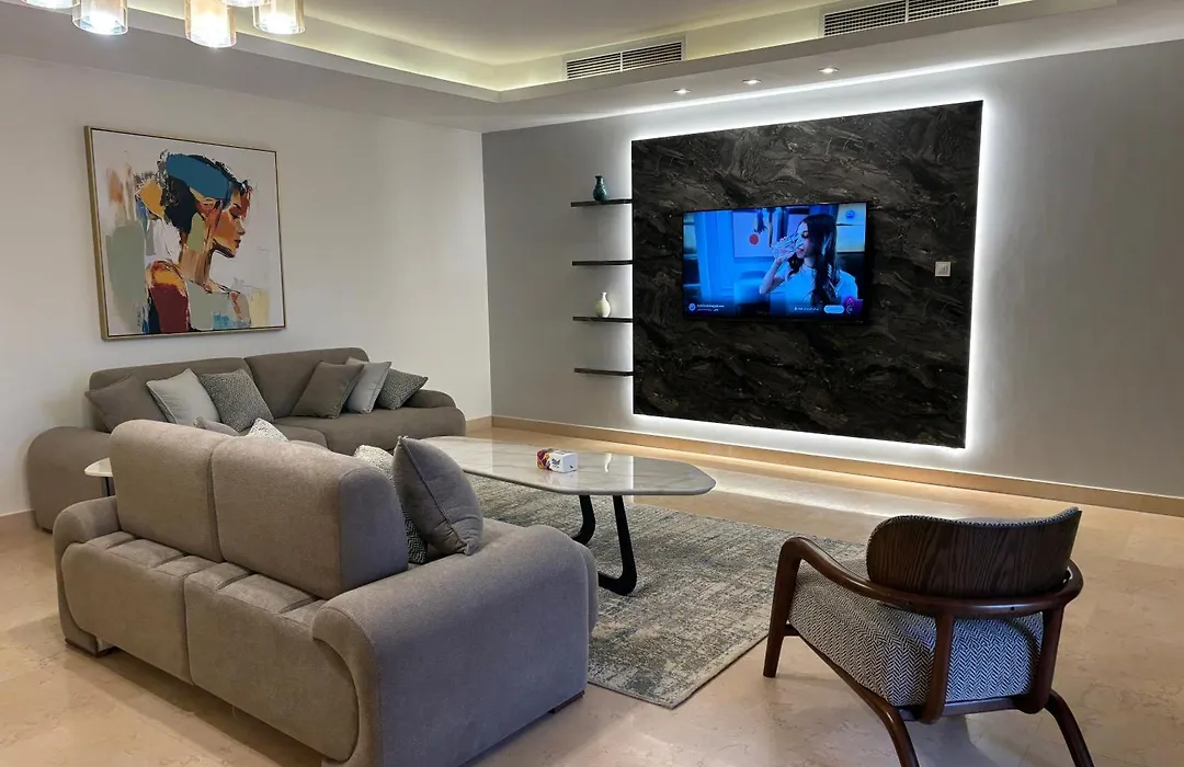 The spacious Cfc Golden Horizon 2Br Apartment Cairo is 14 minutes' walk from the Point 90 Mall. This apartment comes with a swimming pool and a terrace overlooking the garden.
